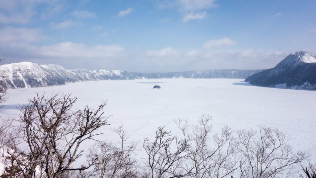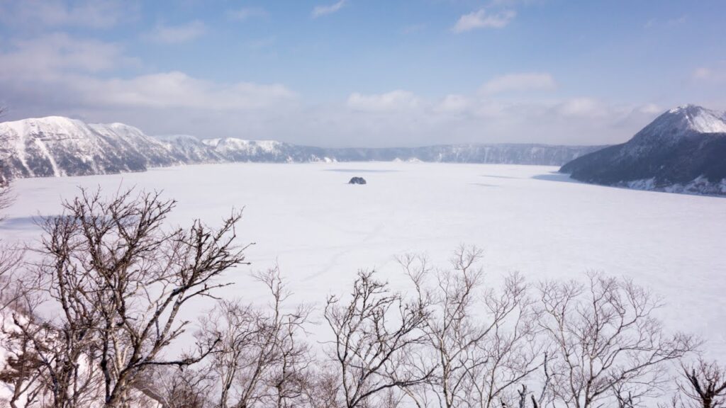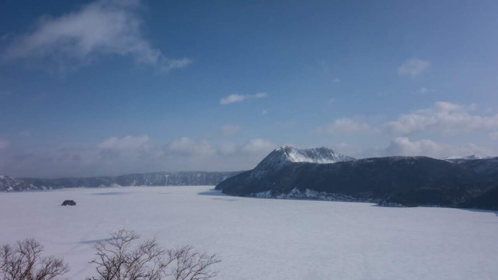 なんと湖は凍っていました(珍しいらしい)。摩周湖の美しい青を見に来たつもりでしたがまぁこれはこれで