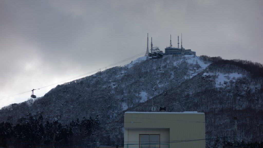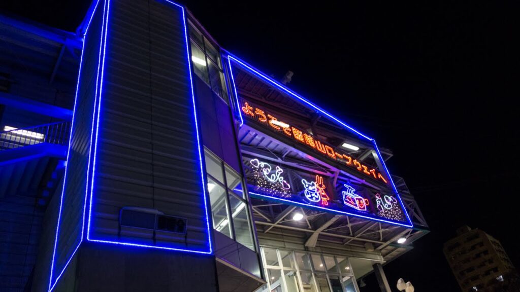 そして夜。寒さで外に出たくない気持ちと戦いながら。麓のロープウェイ乗り場へは電車から降りてちょっと歩く